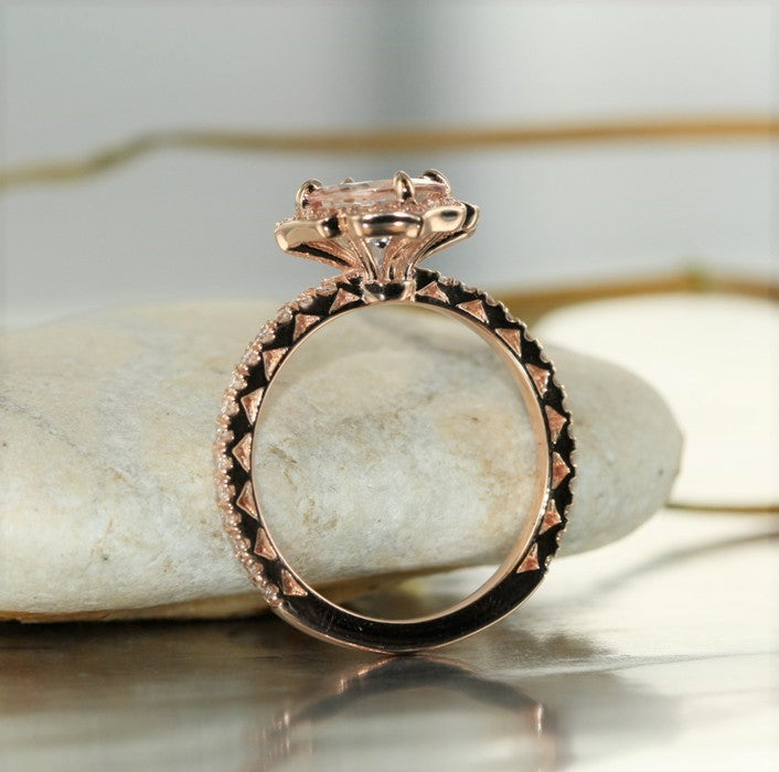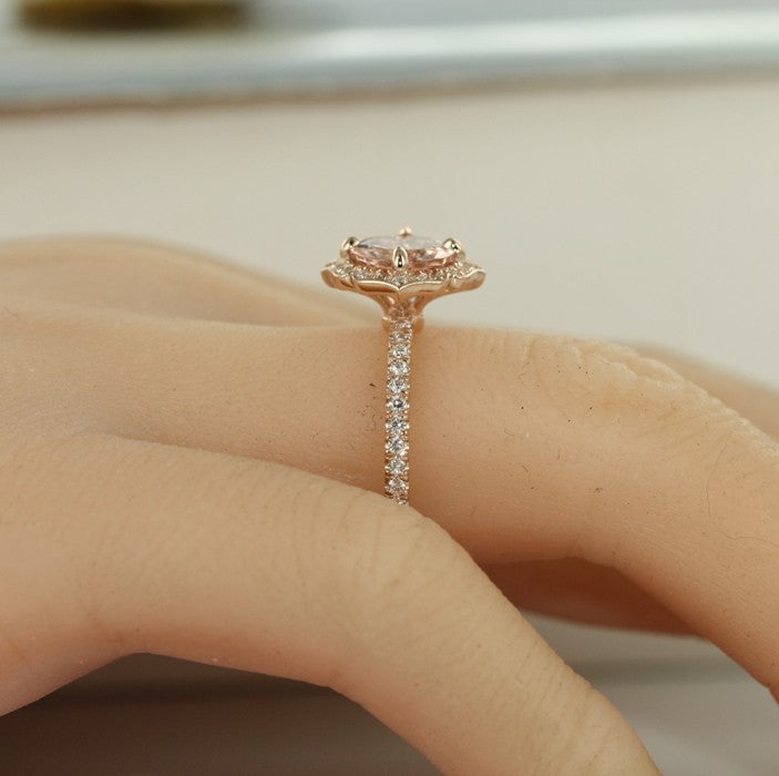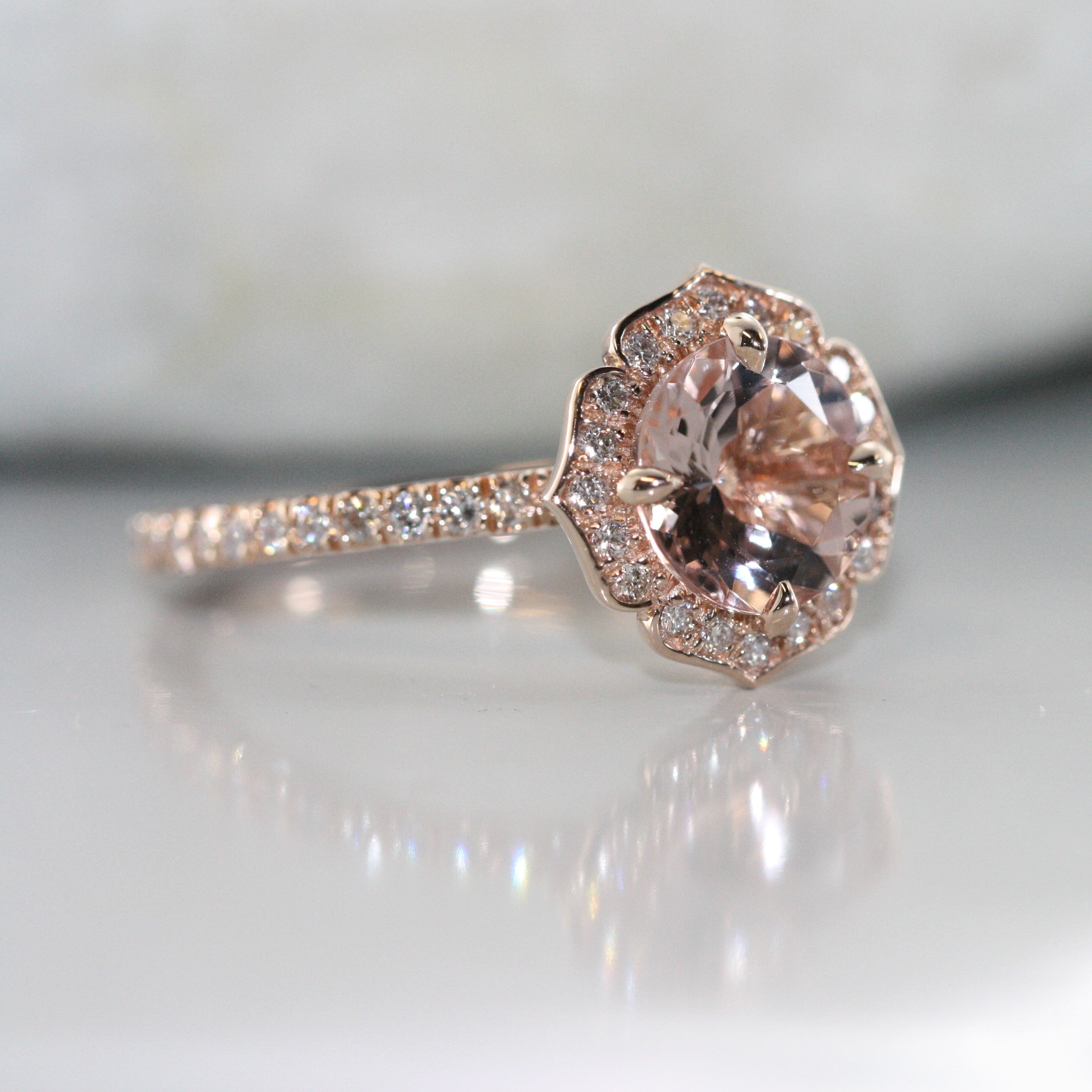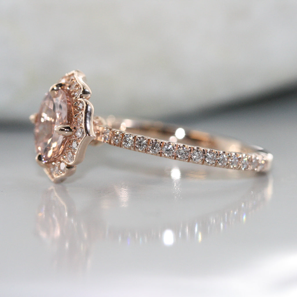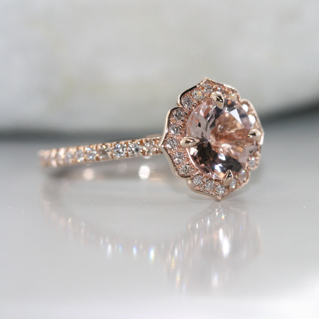 Floral Design Morganite and Diamond Engagement Ring 14k Rose Gold