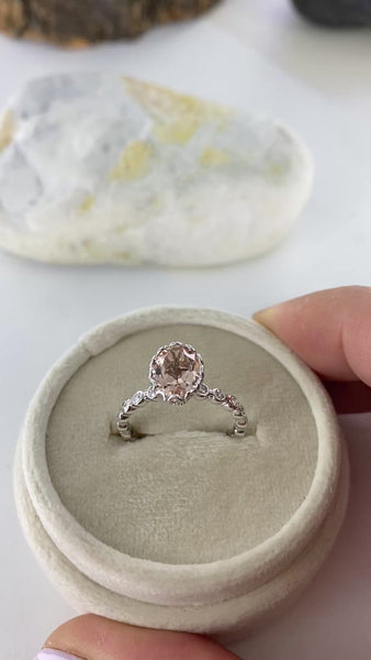 Oval Morganite and VS Diamond and Ring in 14k White Gold