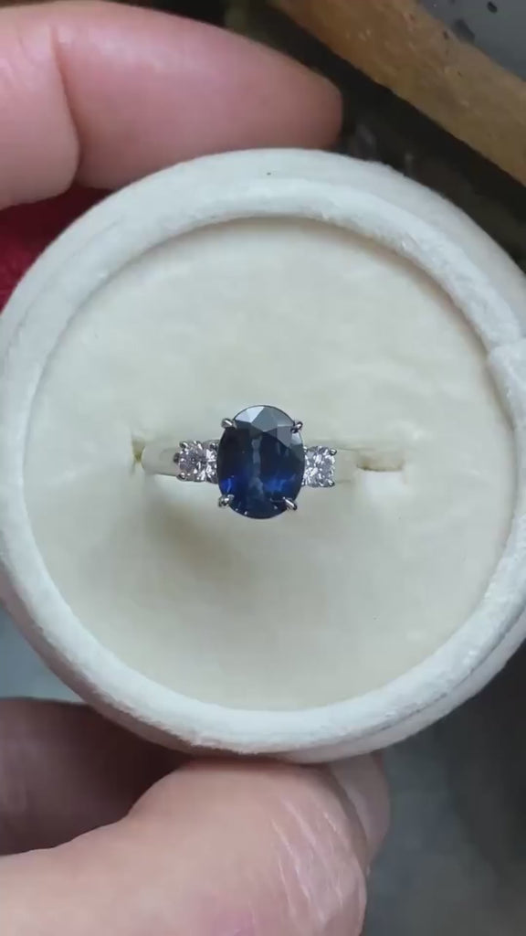 Three Stone Oval Sapphire and Diamond Engagement Ring in 14k Gold – Love JC Ring