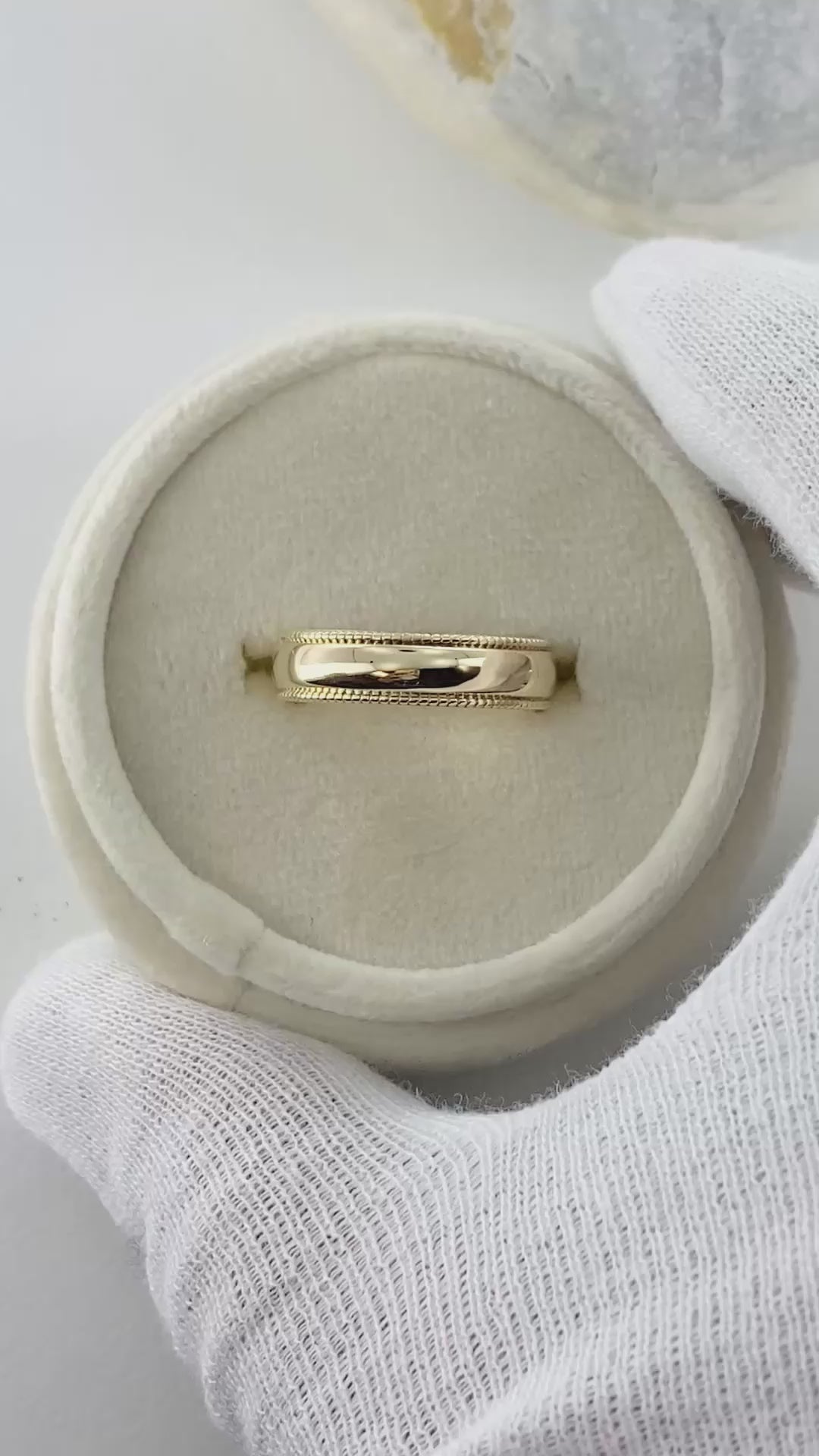 Plain Milgrain Wedding Band Comfort Fit Wedding Ring for Men and Women Polished Finished. This is a traditional classic wedding ring in solid 14k gold that fit most of our engagement ring collections. Choose between Yellow, Rose or White Gold. This ring will set the time of your love with your special someone as eternity.