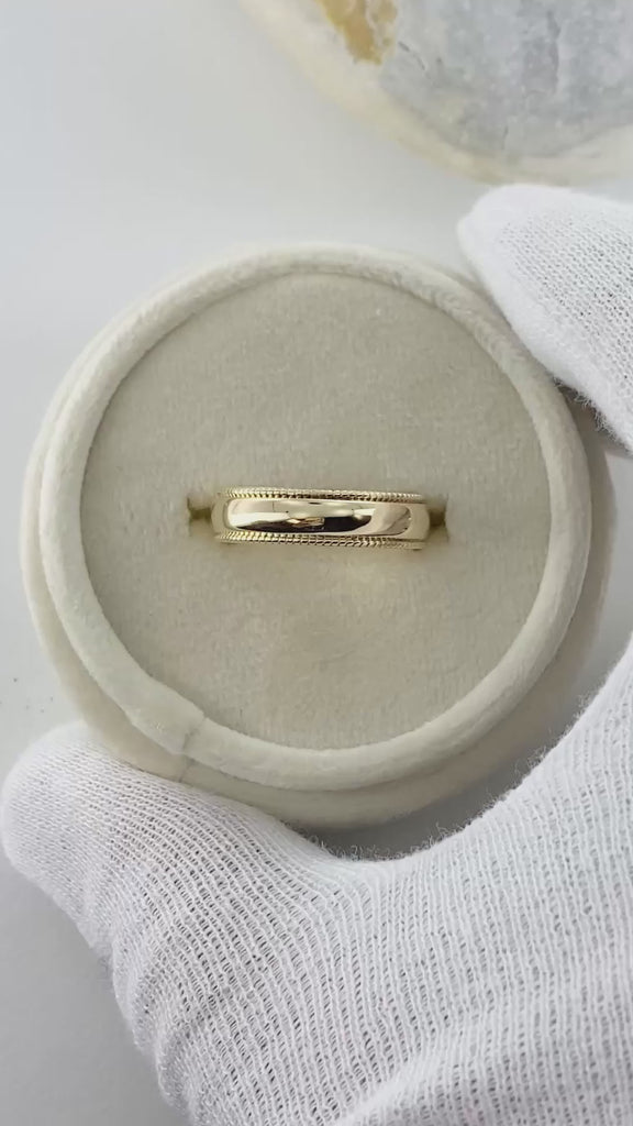 Comfort Fit Ring For Him Milgrain Gold Wedding Ring
