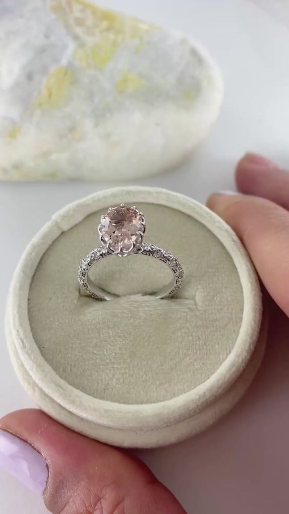 Unique Diamond and Oval Morganite White Gold Engagement Ring