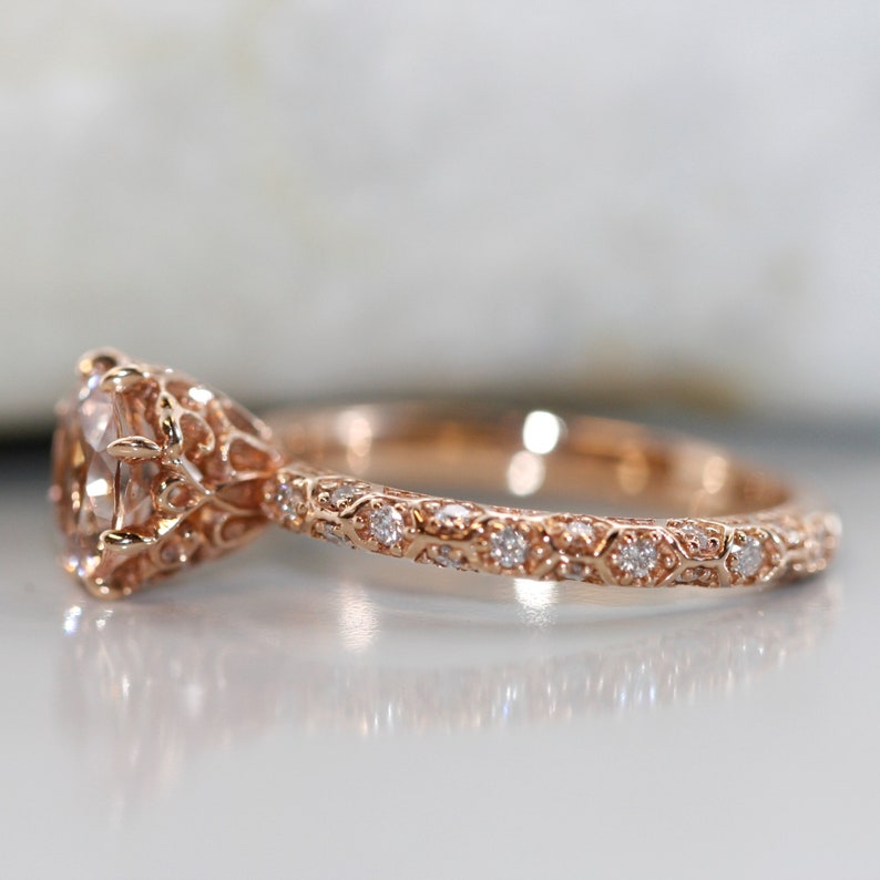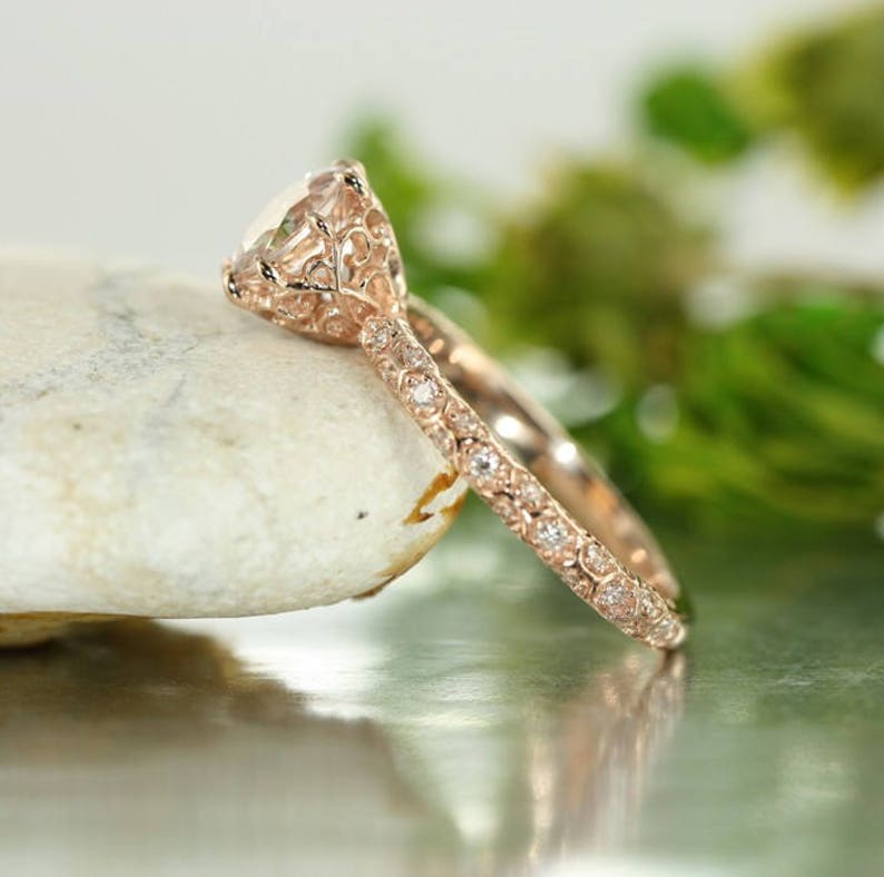 VS Diamond and Morganite Unique Engagement Ring in 14K Rose Gold