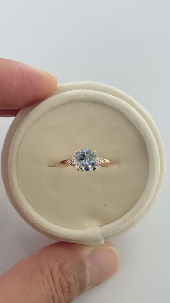 Unity-To create this inspirational symbol of lasting love , this ring features beautiful round-cut 7mm ocean blue aquamarine engagement ring with conflict free natural white diamonds set in solid 14k rose gold. This ring is perfect choice for proposal, engagement, anniversary or any any other meaningful moment.
