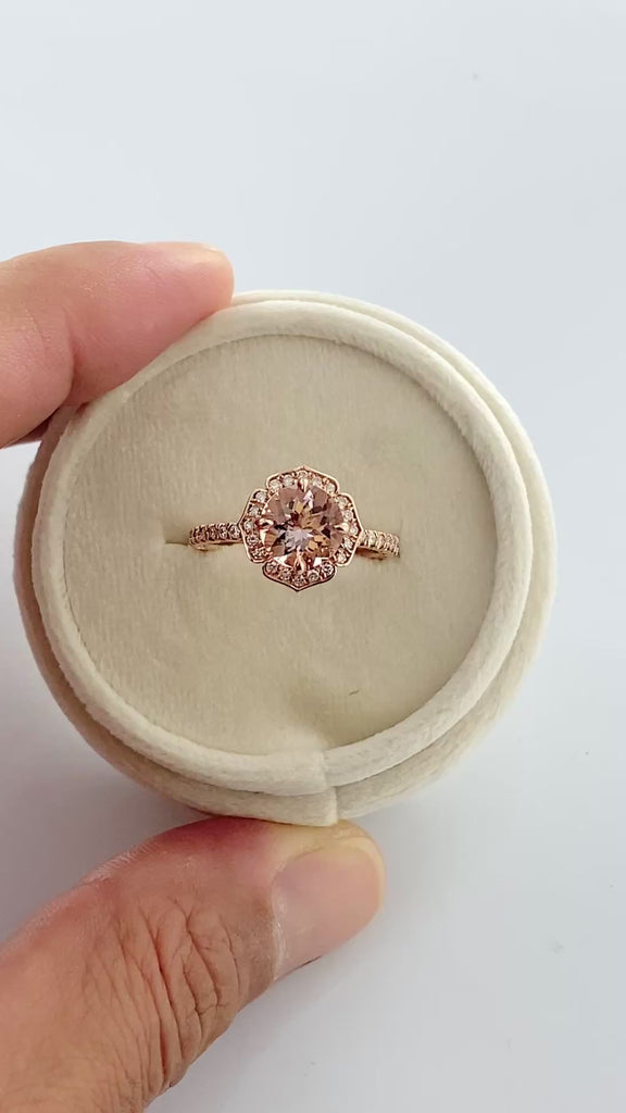 Diamond Halo and Morganite Engagement 14k Rose Gold Ring