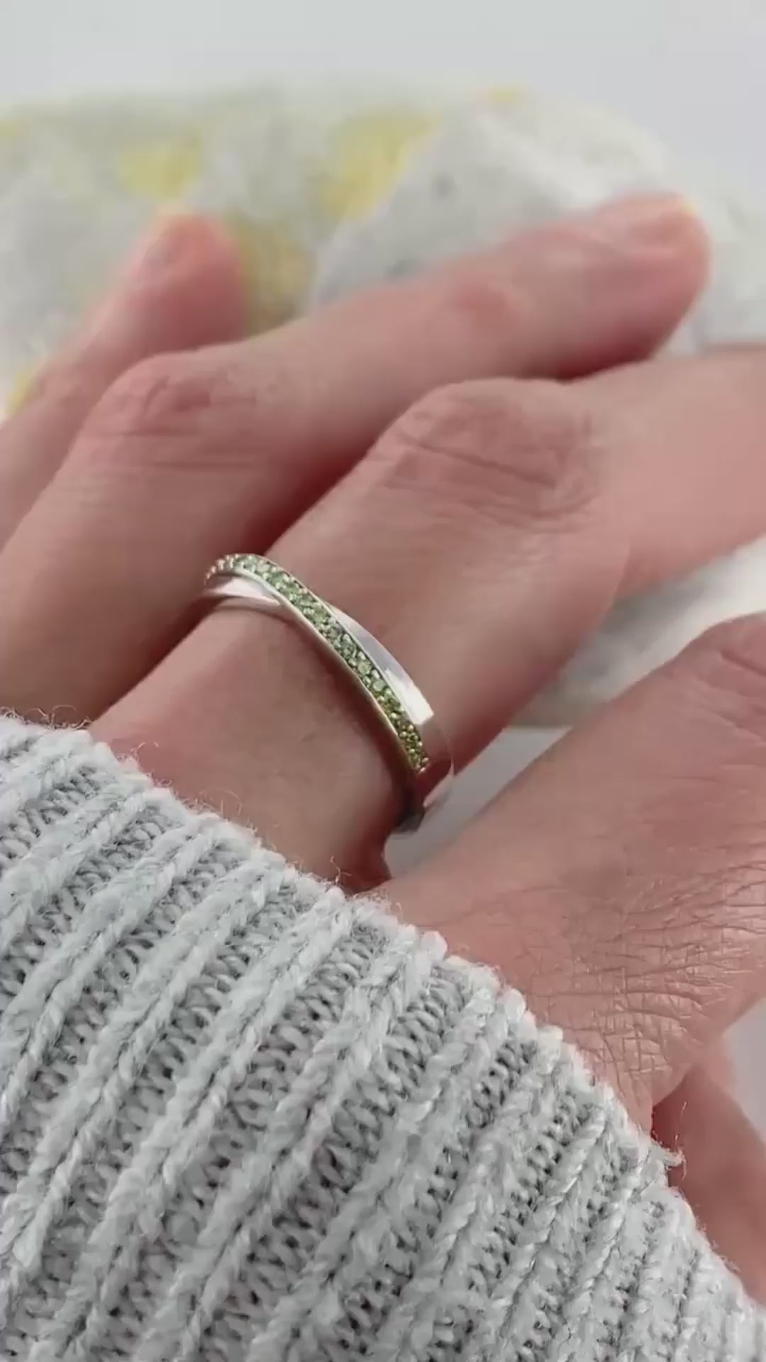Infinity Green Diamond Wedding Anniversary Ring in 14K White Gold