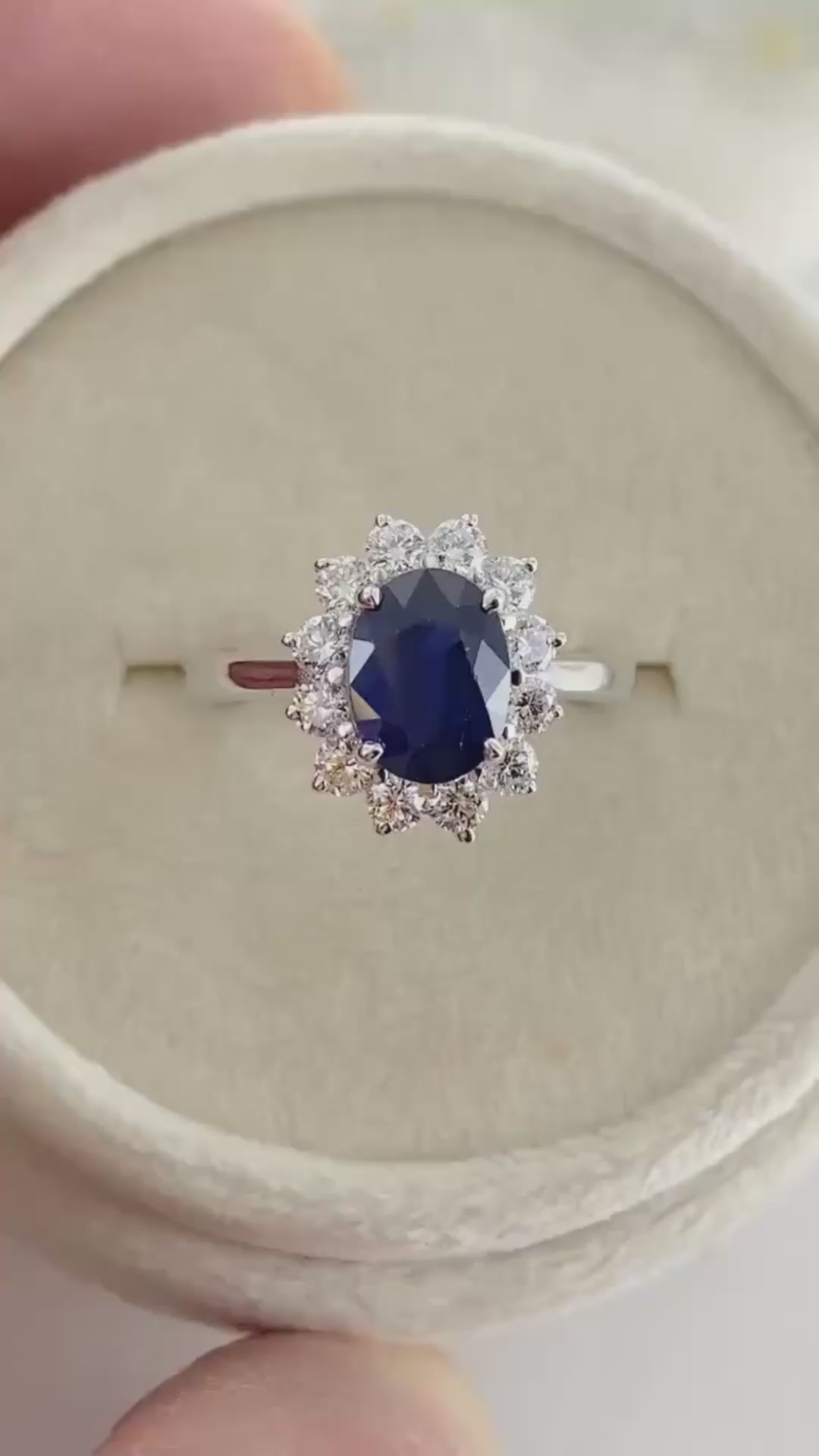 This stunning 8x6mm Oval Blue Sapphire and Diamond Engagement Ring in 14K Gold is inspired by the iconic Diana ring. Featuring a deep blue sapphire at its center, elegantly surrounded by sparkling diamonds, this timeless design embodies royalty and sophistication. Crafted in solid gold, this ring makes a perfect choice for an engagement, anniversary, or heirloom piece. A symbol of elegance and everlasting love, this exquisite ring is ideal for those who appreciate classic beauty with a touch of regal charm.